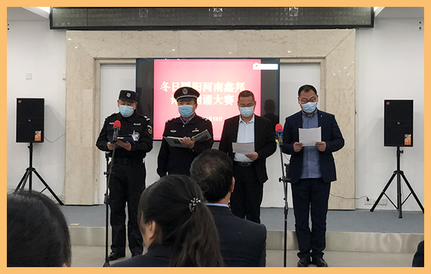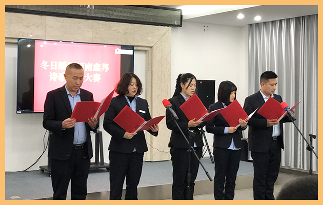 隨著六個隊伍相繼報出各自的隊名和口號,本次活動的個人賽拉開了帷幕。《致敬青春》、《我與鑫邦共成長》、《明天,你好》、《感恩的心》、《讀中國》、《學而論四季》......優(yōu)美的詩歌,再加上每一位選手滿腔熱情的朗讀,向大家展現(xiàn)出他們對生活、對工作、對鑫邦的熱愛。
