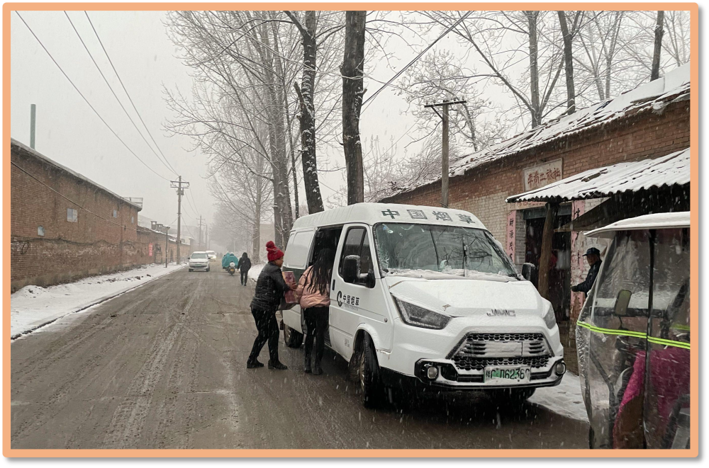大雪紛飛,鄉(xiāng)村的路上靜悄悄的,在所有人都在家里取暖的時候,我們的同事開著車艱難的行走著,只為了答應(yīng)客戶的那句,“你放心,我們下午一定送到”。白雪皚皚的路上“客戶至上”的理念抵御著寒冷的天氣,我們默默的念到使命必達(dá),使命必達(dá)!